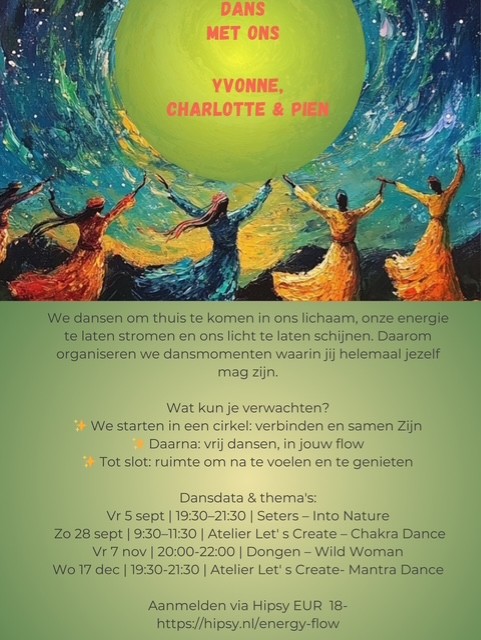Dans in vrijheid, zing zonder schaamte en beleef het moment met alles wat je bent. In verbinding met anderen of juist helemaal in je eigen flow. Beweging wordt meditatie, expressie wordt bevrijding.